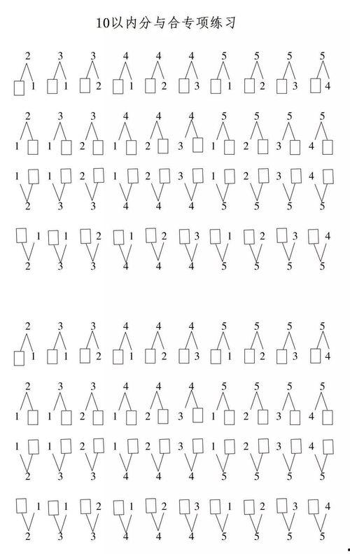 2. 10的拆分游戏:将数字10拆分成不同的组合,如2 8、1 9、3 7等,并尝试用这些组合进行数学运算。