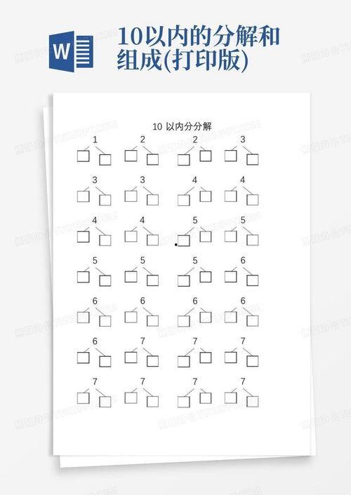 3. 10的拼接游戏:将数字10拼接成不同的形式,如1 0、2 8、3 7等,并尝试用这些形式进行数学运算。
